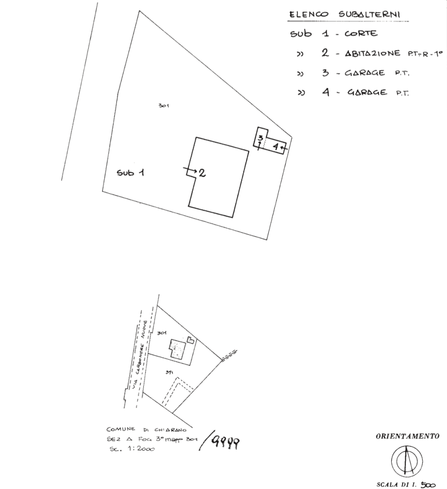 Villino situato in Comune di Chiarano (TV), frazione di Fossalta Maggiore in via Carbonere Nuove, composta da un ingresso, soggiorno - sala da pranzo, una cucina, uno studio, disimpegno, tre camere da letto, due bagni e tre terrazzi al piano rialzato; disimpegno, camera, bagno e sala giochi al piano primo (sottotetto); disimpegno, cantina, magazzino, centrale termica, ripostiglio e bagno al piano terra; pertinenziali due garage al piano terra su corpo di fabbrica staccato e area scoperta esclusiva di mq. 4.354 catastali.