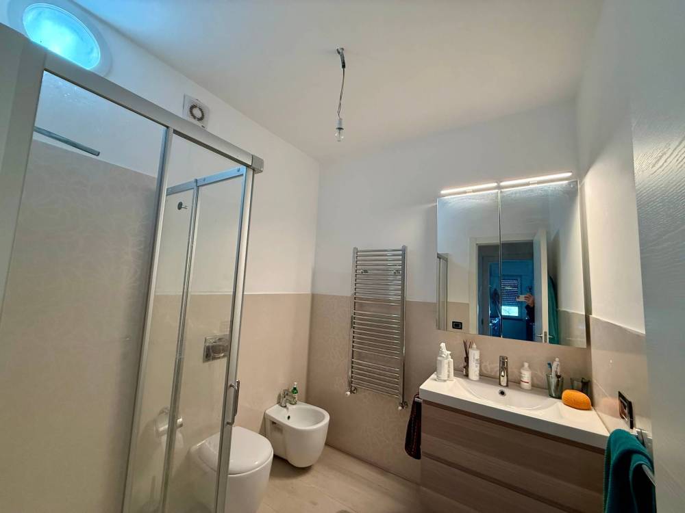 Lappartamento è composto da un luminosissimo soggiorno con cucina a vista, due camere matrimoniali, bagno e ripostiglio e dispone di un impianto di riscaldamento a pavimento e aria condizionata.
