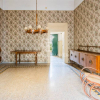 Dal primo ingresso si accede ad un grande disimpegno/ corridoio, alla cui sinistra tinello, cucina a legna in muratura risalente allepoca della costruzione, affaccio su balconcino interno e bagno di servizio. Speculare allingresso, grande soggiorno con camino e grandi porte finestre con affaccio sul balcone prospiciente alla facciata principale. Sul lungo corridoio dotato di armadi a muro, parallelo al soggiorno ed alle tre sontuose, per dimensione, camere da letto, incontriamo il secondo ingresso ed in fondo una sala bagno con comodo disimpegno. La soluzione è angolare e dispone di affacci su balconi per ogni lato, ha tre grandi finestre, il che la rende molto luminosa e ben arieggiata, ha pavimenti a mosaico depoca ottimamente tenuti, volte alte, diversi soppalchi, radiatori in ghisa ed è ovviamente termo autonomo.