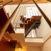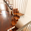 Una scala autoportante in legno massello, dal design elegante e funzionale, conduce alla zona notte.
