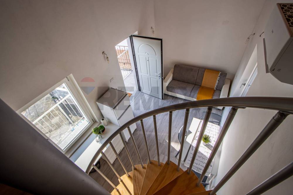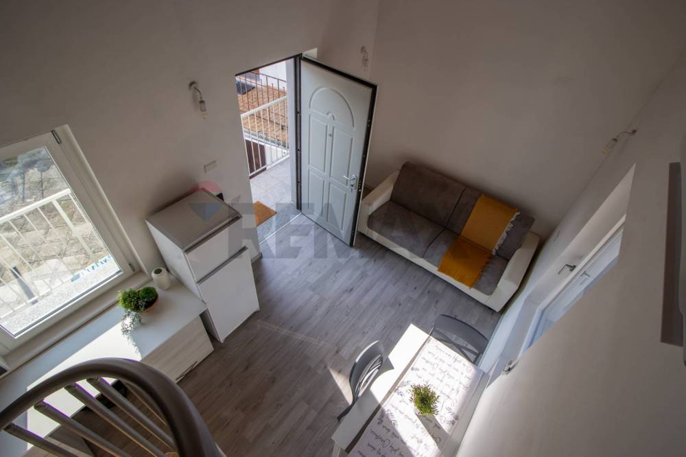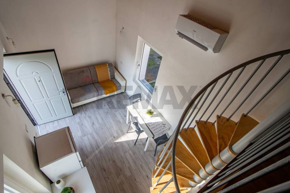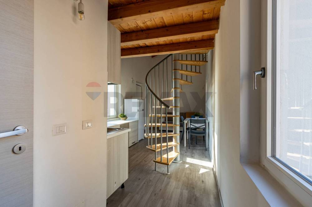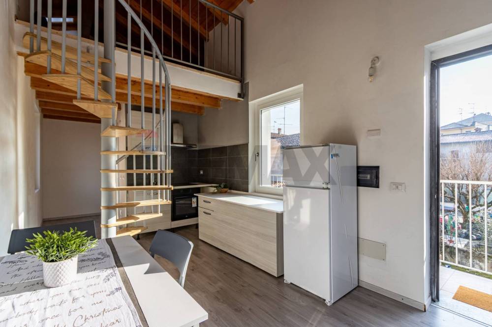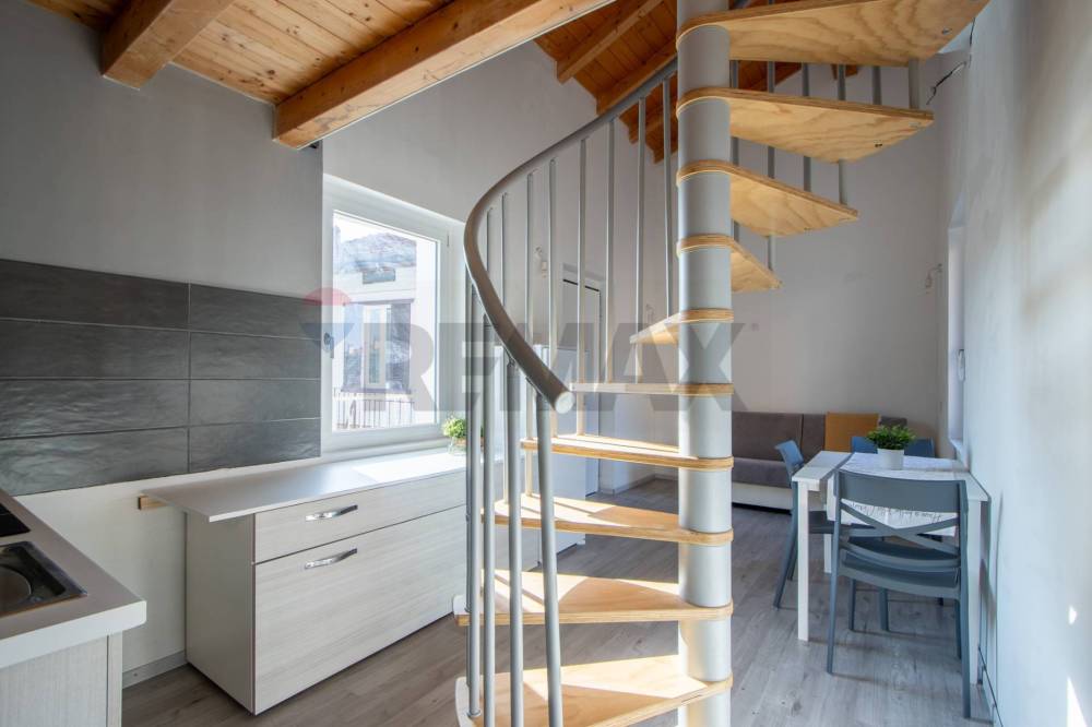 Lingresso si apre su una spaziosa zona living inondata di luce, dove il moderno angolo cottura si sposa con il calore delle travi a vista. Il vero tocco di classe è dato dalle doppie altezze: una scala conduce al soppalco a vista, un ambiente intimo e raffinato dedicato alla camera matrimoniale. Completa la proprietà un bagno e un balcone privato.