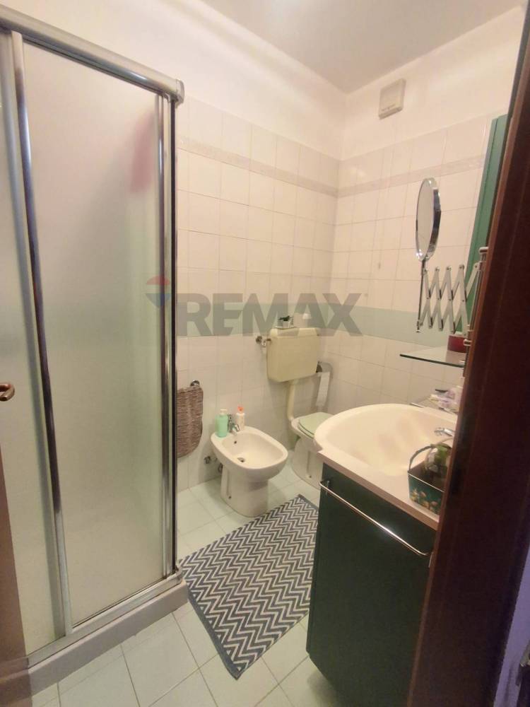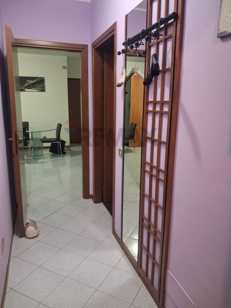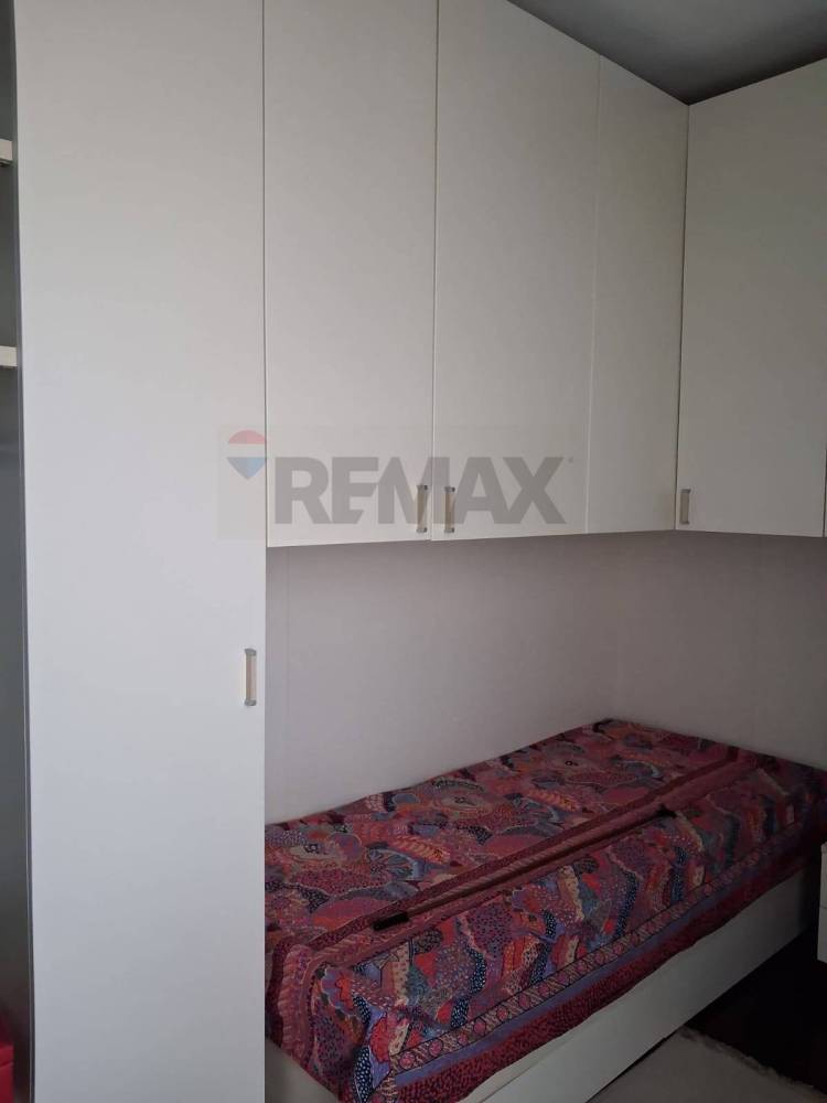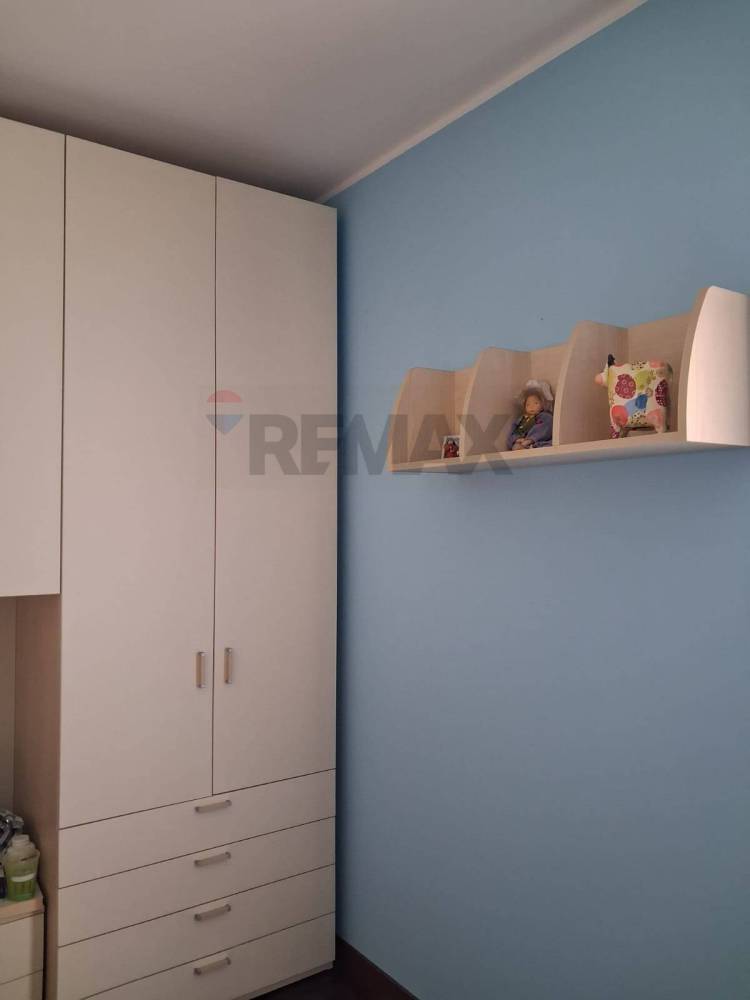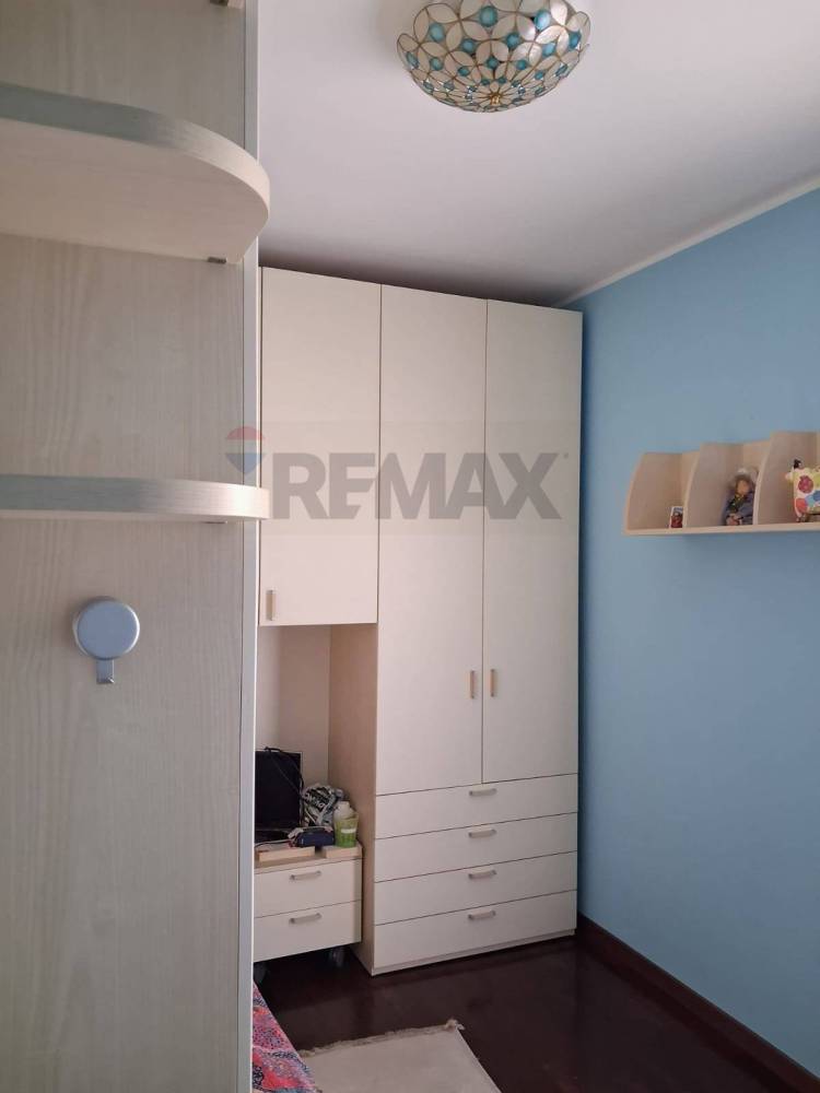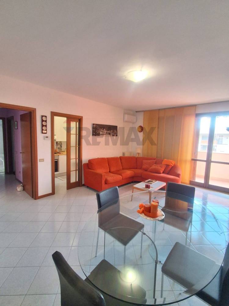 Lappartamento è composto da soggiorno con zona pranzo e accesso a un ampio terrazzo, cucina abitabile, camera matrimoniale con bagno en suite dotato di doccia e balcone, cameretta e secondo bagno con vasca. È presente aria condizionata nella zona giorno e nelle camere, oltre a riscaldamento autonomo.