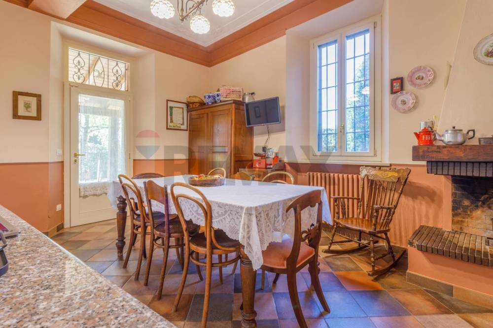 Al piano terra, la zona giorno accoglie con ambienti luminosi e conviviali: la cucina abitabile, cuore pulsante della casa, è scaldata da un camino che ne esalta il carattere autentico e familiare; accanto, la sala da pranzo e la veranda vetrata — con vetri antisfondamento — offrono spazi perfetti per vivere ogni stagione immersi nel verde.