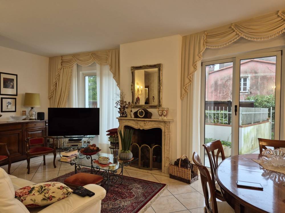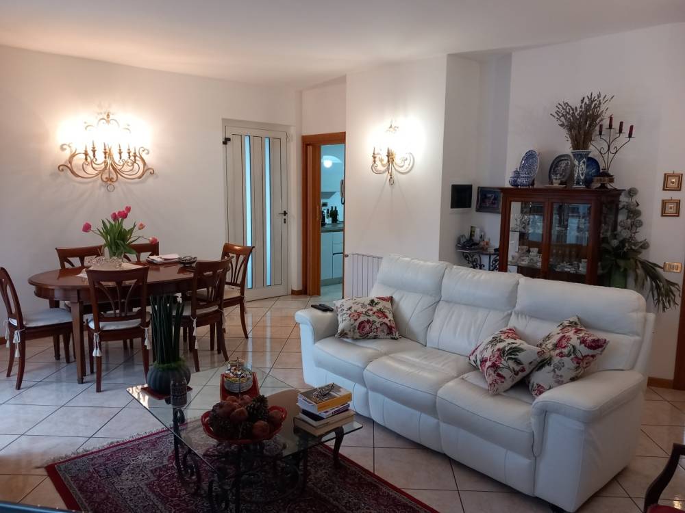 Appartamento ad ingresso indipendente in trifamigliare in zona residenziale e vicino a tutti i servizi: ingresso in ampio soggiorno con accesso diretto a terrazza, cucina abitabile con accesso a terrazza solarium attrezzata, studio/cameretta, bagno, ampia camera padronale con bagno, camera doppia. Pergola, forno/barbecue, piccolo giardino. Collegati all'appartamento garage e cantina. Posti auto di proprietà esterni n° 2. Abitabile subito.