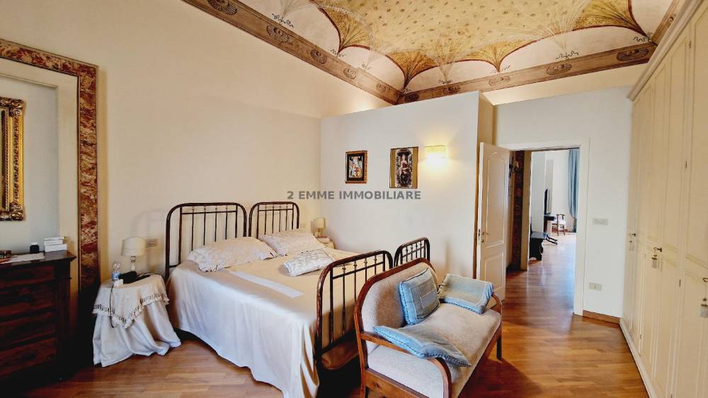 Al piano primo di Palazzo Cafratelli-Seghetti, al civico 251 di Corso Mazzini si trova questo splendido appartamento di 160 mq posto al piano primo con ascensore. Prima del restauro del 2002 è stato sede del monastero delle Suore domenicane le quali vi istituirono una scuola per l'infanzia, materna ed elementare. L'appartamento composto da ingresso su disimpegno, piccolo bagno per gli ospiti con finestra, ampio e luminoso soggiorno, cucina abitabile e grazioso chiostro interno di proprietà di circa 40 mq. Al piano principale ci sono una master room con un grande bagno, armadio lineare su misura di oltre quattro metri. Il salone e la camera matrimoniale presentano splendidi affreschi restaurati. Al piano secondo si accede tramite scala a chiocciola, qui troviamo la seconda camera da letto con bagno privato e un ripostiglio. Lo stato attuale, interno ed esterno, è ottimo. Portone blindato, infissi in legno con doppio vetro, persiane in legno. L'immobile non ha subito danni a causa degli eventi sismici del 2017. Portone blindato, videocitofono. Venduta parzialmente arredata.E' possibile ricavare una terza camera realizzando la cucina a vista sul soggiorno. Giardino condominiale. Un fondaco di 9 mq al piano terra, facilmente accessibile anche con la bici. A pochi minuti a piedi dalle principali piazze della città.