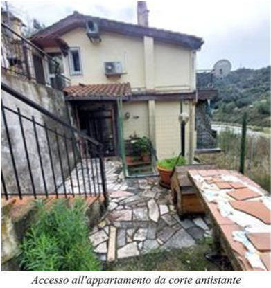 Trattasi di un appartamento al piano primo, con e un magazzino/deposito al piano terra e corti annesse, ubicato in edificio lungo la strada per arrivare alla frazione di Calvo nel comune di Ventimiglia, prima di entrare nel nucleo storico della frazione.