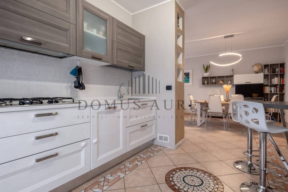Limmobile si compone di tre camere da letto: una matrimoniale e due camere singole di cui una con affaccio su un terrazzino, due bagni, cucina abitabile con uscita su un ulteriore terrazzino, e soggiorno impreziosito da camino, elemento che valorizza lambiente living e ne aumenta il comfort.