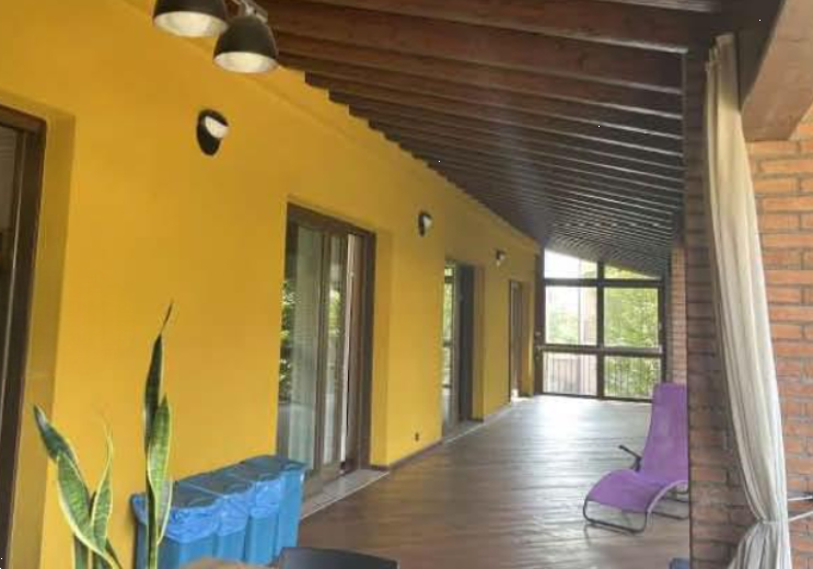 L'immobile è composto da piano terra con ampio portico, ampia zona ingresso , giardino, autorimessa e locali accessori. Un elegante vano scala a pianta semicircolare conduce ai piani. Il piano primo comprende una ampia loggia, disimpegno e soggiorno oltre a cucina, ripostiglio e bagno con antibagno. Il piano secondo è composto da disbrigo che da accesso a camera principale con guardaroba e bagno , dal disbrigo si accede inoltre ad un corridoio che conduce a tre camere da letto con un bagno.