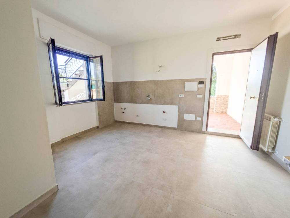 Soggiorno luminoso con angolo cottura a vista