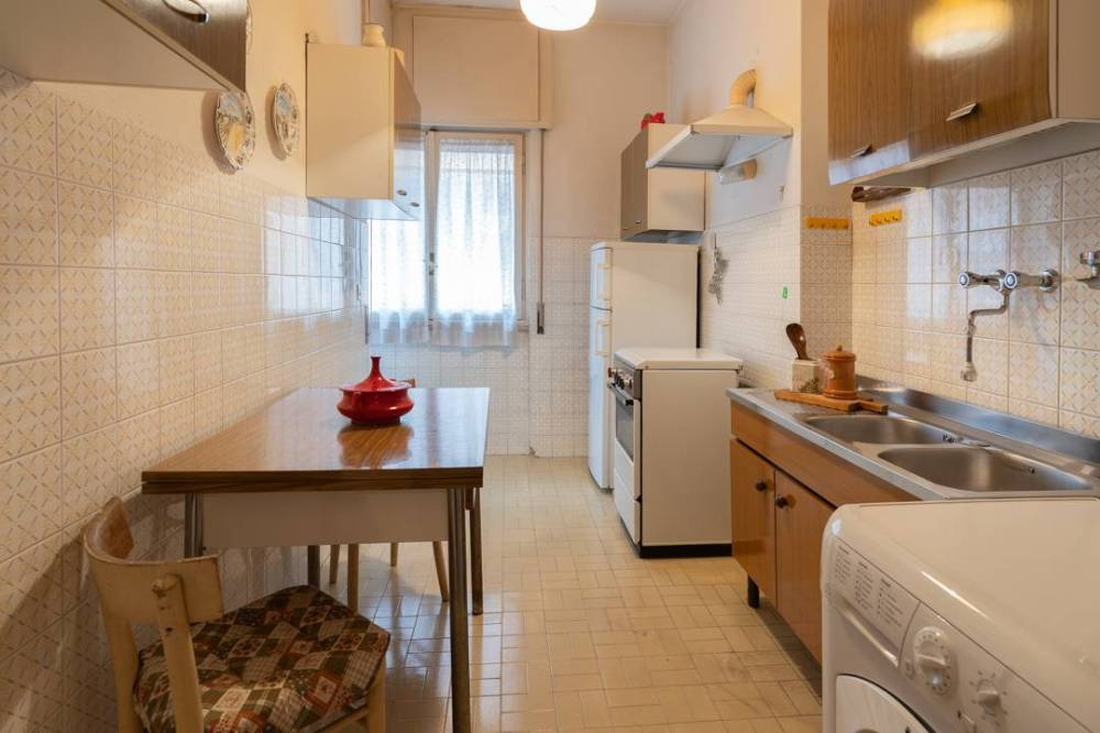 Un comodo disimpegno conduce alla cucina abitabile, anch’essa servita da un secondo balcone.