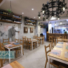 SALA PRANZO - tavoli in legno da 2/4/6/ posti muniti di sedie per un totale di 50 posti a sedere interni, condizionatore taglia aria posto all'ingresso, 2 condizionatori da 9.000 btu, scaffalature varie.