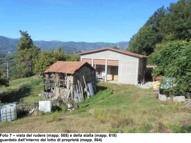 Lotto 1 posto a monte di Via Madonna delle Vigne composto da un terreno (particella 504 di qualità seminativo arborato) dove è posizionata una stalla (particella 618 categoria catastale C/6) e un rudere (particella 505 considerabile fabbricato diruto).