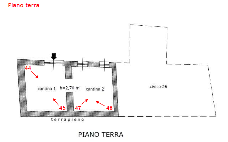 Il Lotto 2 è posto a valle di Via Madonna delle Vigne ed è composto da un ampio terreno (particella 752 di qualità seminativo arborato) a monte di quale, sulla particela 560, è posizionato un fabbricato di tre piani fuori terra con due civici di riferimento.