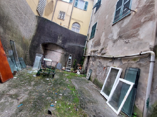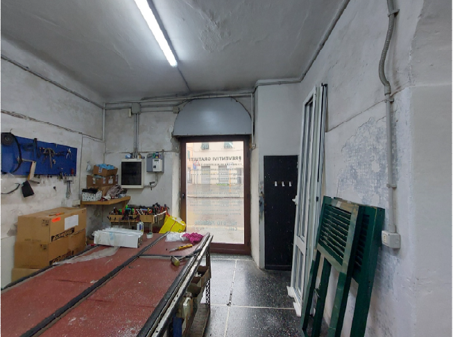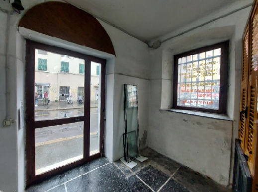 Locale commerciale sito a Genova circoscrizione Valpolcevera Via Teglia n.107R piano terra con tre separati accessi si compone di due ampi ambienti principali con divisioni interne, tre ambienti secondari ed un servizio igienico con ampio cortile esterno, locale accessibile da quest'ultimo.