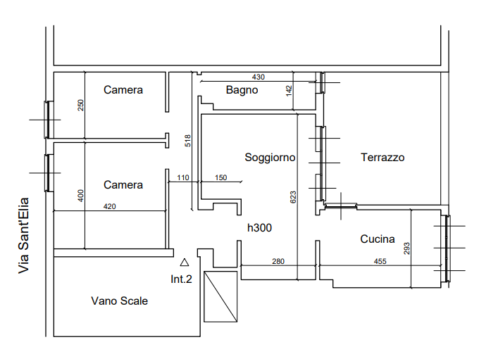 Piena proprietà di appartamento in via Sant'Elia 104-2, con superficie netta di 82mq (106mq catastali) composto da ingresso, soggiorno, due camere, cucina, bagno, nonché di un terrazzo con superficie netta di 22mq. Nel lotto è compresa il box pertinenziale di 24mq, sito in via Antonio Sant'Elia 82-96 distinto con il numero 13, molto luminoso e dotato di una parte soppalcata ad uso sgombero, con accesso carrabile da comodo spazio condominiale per il tramite di una porta basculante in lamiera.