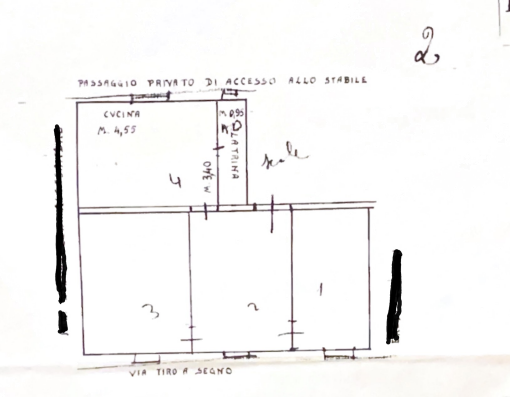 Si accede al portone del civico 20 per mezzo di scalinata in muratura di circa 15 gradini.