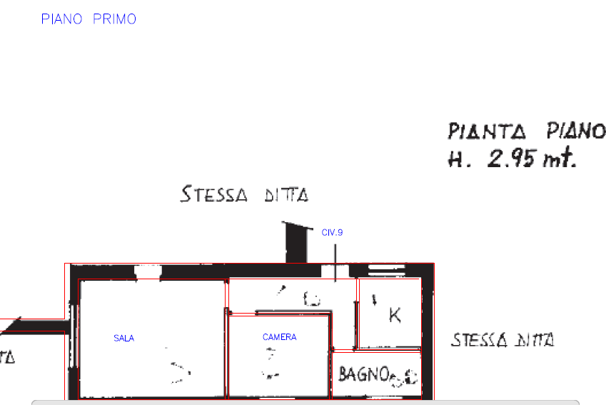 Al piano terra è presente unità immobiliare a destinazione abitativa con collegamento diretto al piano sottotetto, connotata dai civici 5 e 7, con annesso locale cantina ad ingresso indipendente dall'esterno con due modesti spazi esterni di pertinenza; al piano primo è ubicata una unità immobiliare a destinazione abitativa, connotata dal civico 9, con ingresso indipendente dall'esterno.