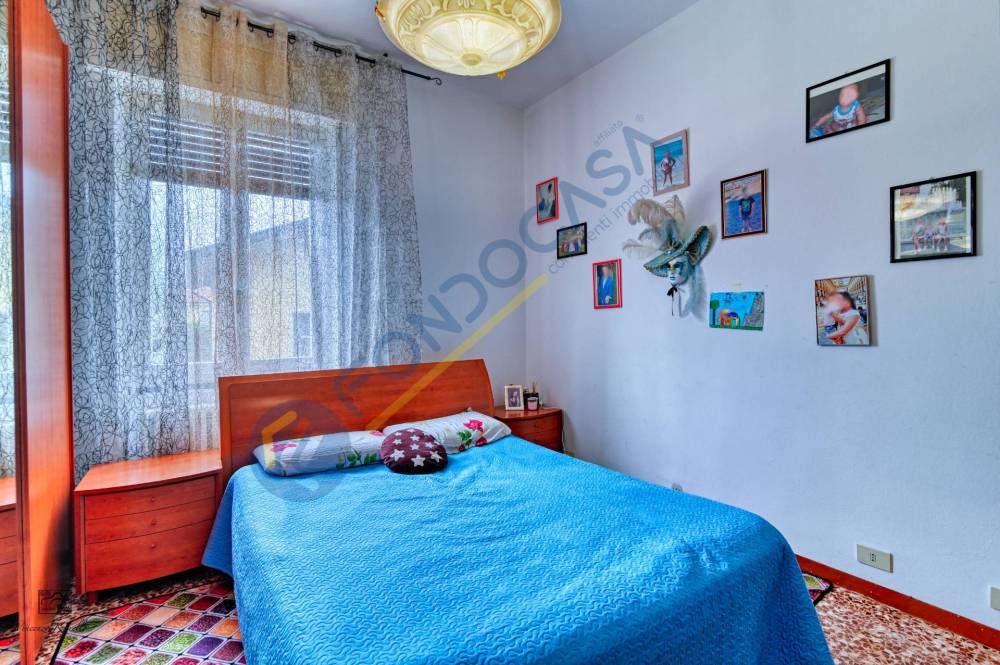La pavimentazione è in marmo nella zona giorno e nella zona notte, mentre in bagno è in ceramica, gli infissi sono legno con vetro singolo.