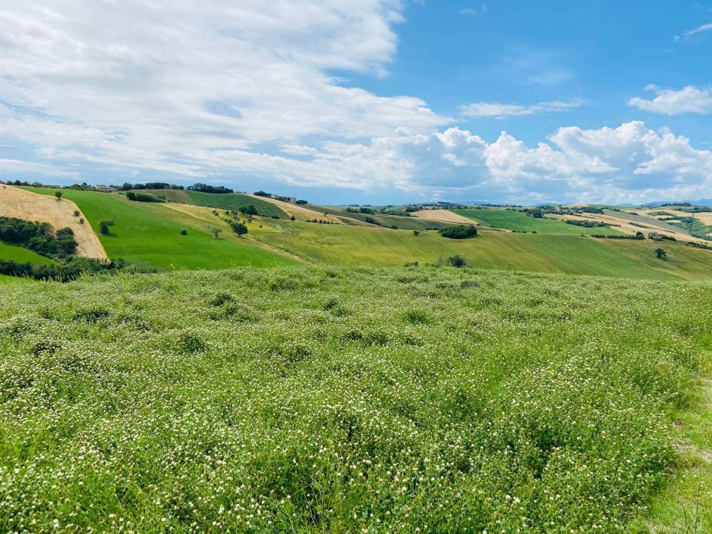 Posizionato in un modo molto riservato, circondato dalle morbide colline marchigiane e con una vista stupenda.