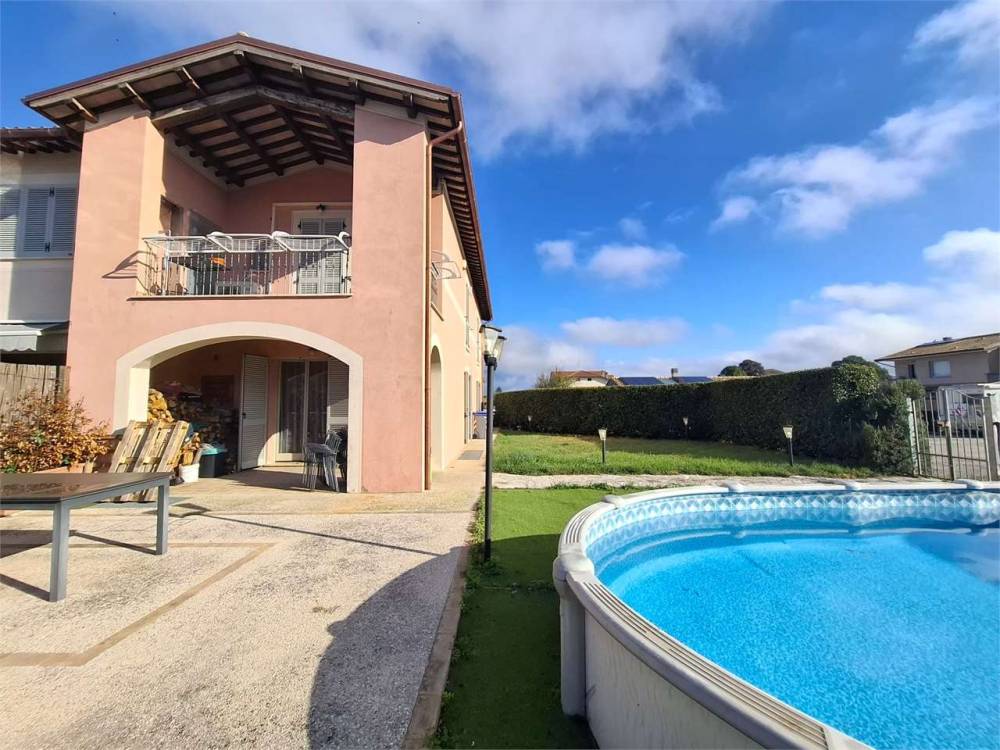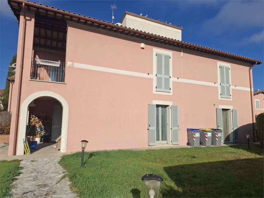 Spoleto, primissima periferia servita e richiesta, disponiamo di una splendida porzione di villa disposta su più livelli. Al piano terra troviamo un ampio salone con accesso al giardino, cucina abitabile e bagno; al piano primo tre camere matrimoniali, un ulteriore bagno e una loggia coperta con affaccio sulle colline circostanti. Soffitta/torretta che puó essere adibita anche a studio al piano secondo. Il piano seminterrato è composto da una spaziosa taverna, un garage doppio e un vano lavanderia. Completa la proprietà un ampio giardino angolare con piscina. A livello tecnologico la casa è fornita di pannello fotovoltaico da 4,5 Kw e pannello solare per acqua calda sanitaria e riscaldamento a pavimento. Split con aria condizionata. L'immobile usufruisce di accumulo di acqua piovana per l'irrigazione del giardino. Nel prezzo di vendita si intende compresa la cucina del piano terra.